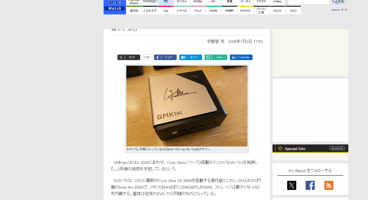 Japanese media outlet PC WATCH focused on user value and market potential, asking how EVO-T2 balances performance, expandability, and portability for different regions.