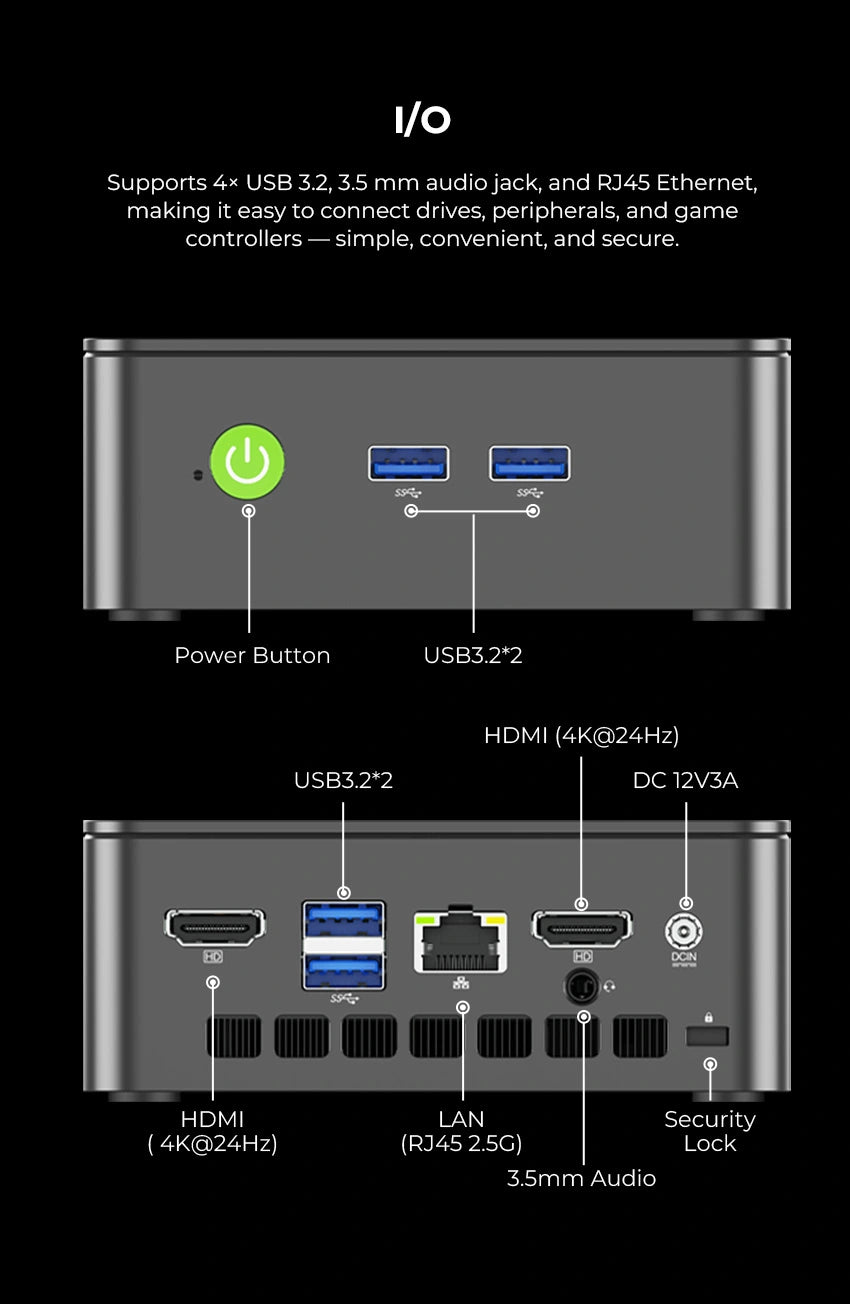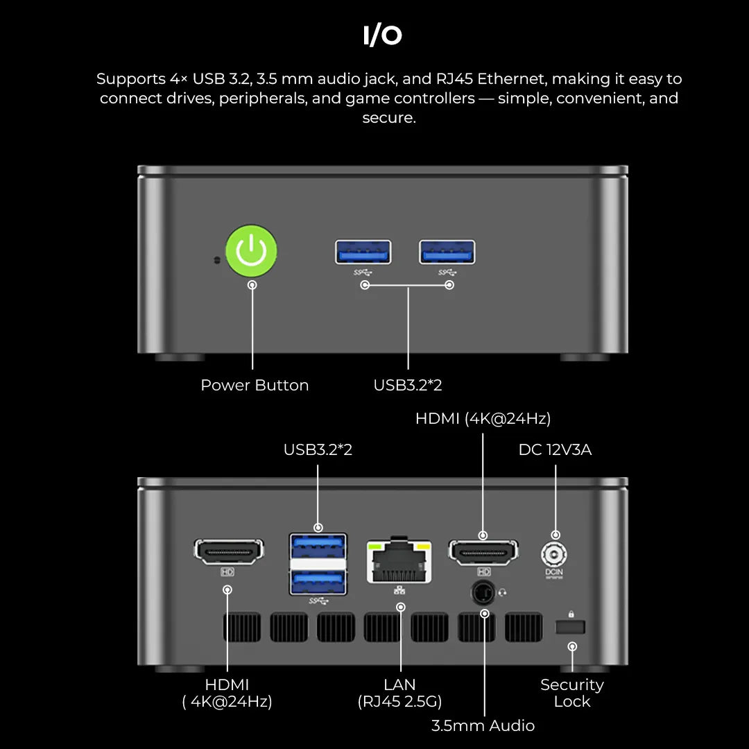 | Ethernet (RJ45) | 2.5G LAN, Intel® i226 Controller |